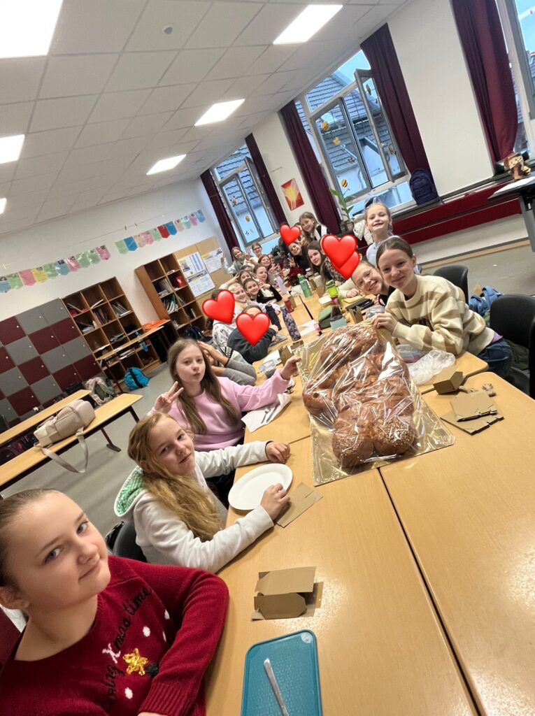 Im Anschluss an die Messe pflegte die 6c eine weitere Martins-Tradition: Gemeinsam traf sich die Klasse im Klassenraum zum Weckmann-Essen. In gemütlicher Runde wurde nicht nur das leckere Gebäck geteilt, sondern auch der Gedanke des Miteinanders, der das St.-Martinsfest so besonders macht.