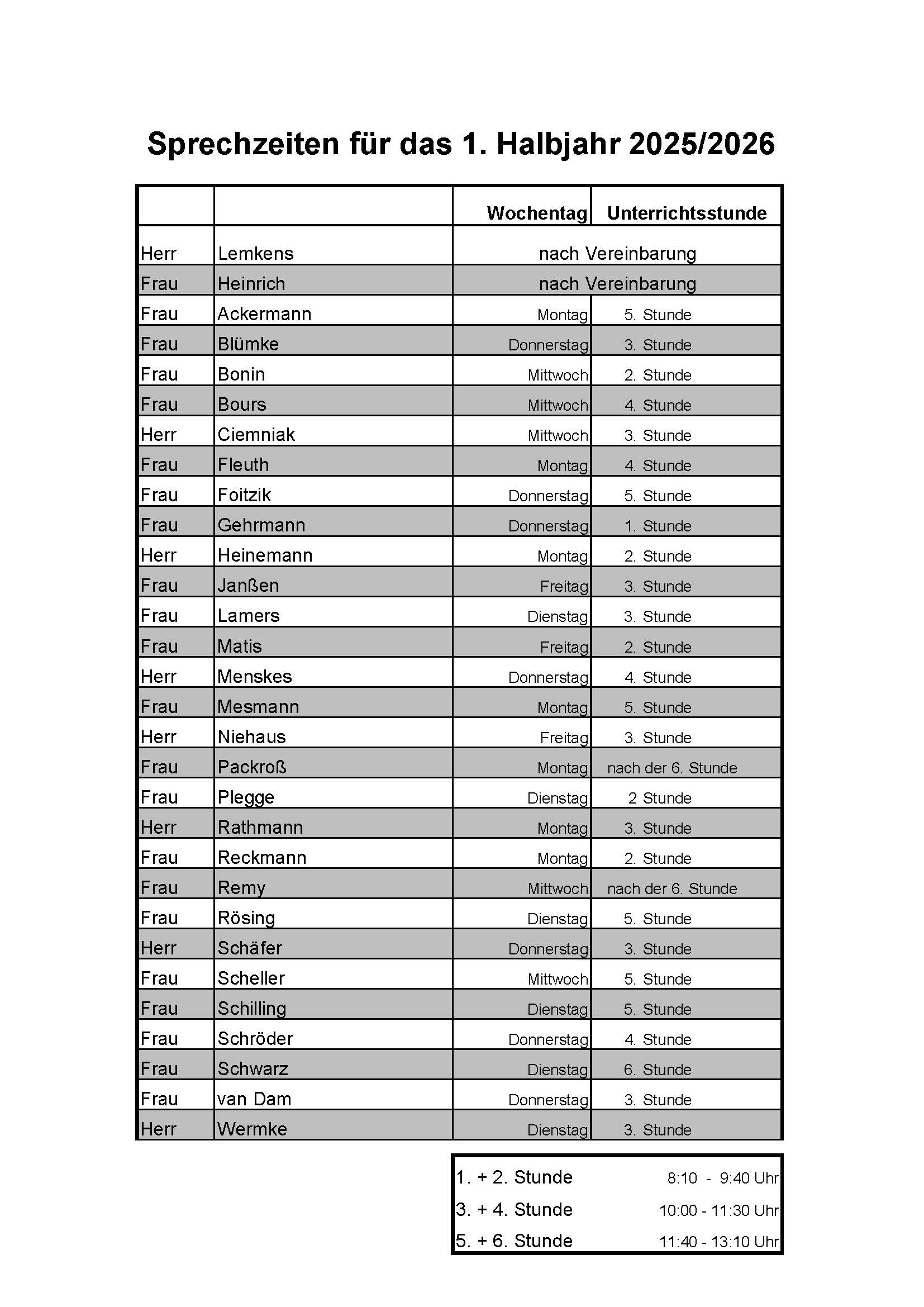 Aktuelle Sprechzeiten