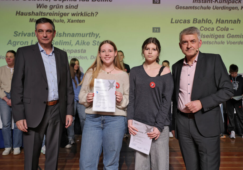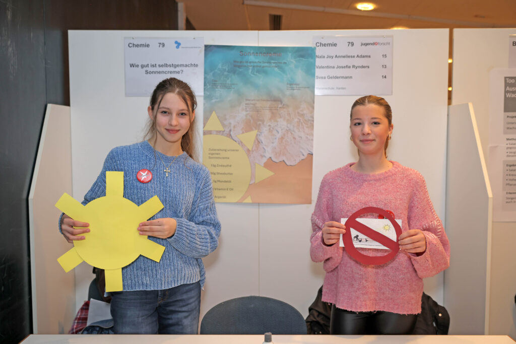 Unsere Schülerinnen überzeugten mit ihren Arbeiten unter insgesamt 148 Projekten und hoben sich damit deutlich aus einer starken Konkurrenz hervor. Insgesamt nahmen rund 300 Kinder und Jugendliche aus den Kreisen Kleve, Wesel, Heinsberg, Viersen, dem Rhein-Kreis Neuss sowie aus Mönchengladbach und Krefeld teil.